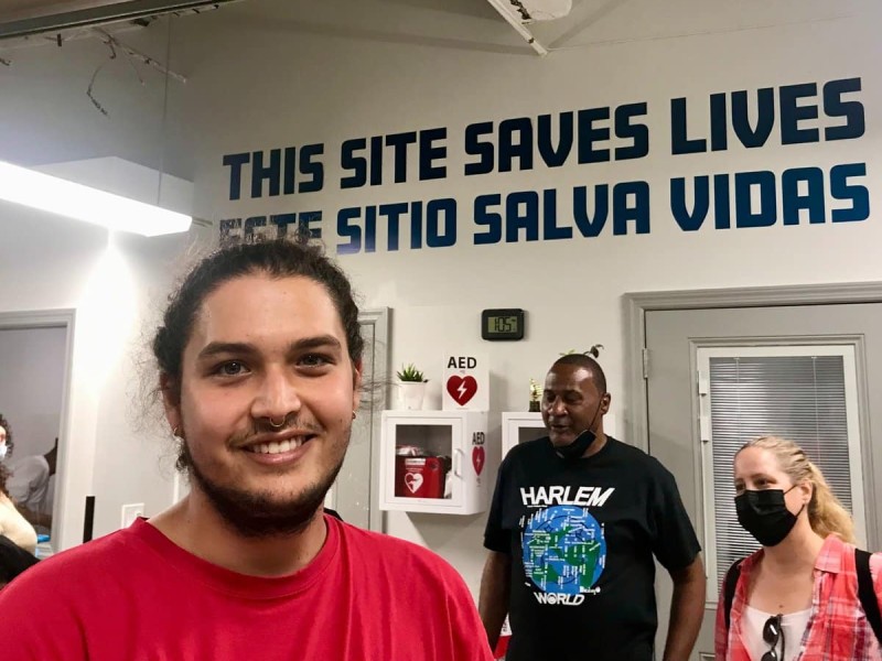 I was part of a group touring OnPoint NYC’s overdose prevention center in East Harlem. It was a busy August morning, and we were waiting in the lobby, a hive of positive energy, about to visit the safe consumption space when he sped by us – long hair up in a bun, a quick wave, and a portable oxygen tank trailing behind.